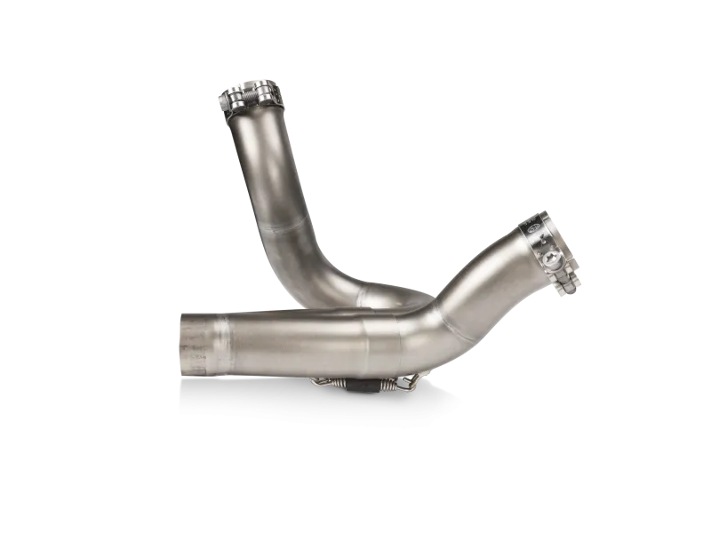 Constructed from high-grade stainless steel, this newly developed link pipe replaces the stock pre-muffler, where the stock catalytic converter is located, leading to a more direct gas flow, aimed at increasing performance. Providing a huge weight reduction of 79.2% (3.8 kg) over the original link pipe, this option also increases power by 3.2 kW (4.4 hp) at 8,600 rpm and improves torque by 5.6 Nm at 4,600 rpm when fitted to a Slip-On Line (Titanium) on a Ducati DesertX and compared with the standard stock system on the Akrapovič in-house dyno. Serving up an enhanced sportier racing sound, this track-oriented optional part has no EC/ECE type-approval and has been developed for use on closed-course competition circuits only. It is a simple plug-and-play installation, and remapping of the ECU is recommended.