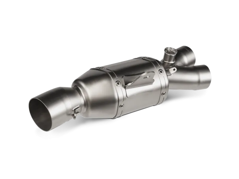 Optional stainless steel link pipe with resonator for mounting with the muffler and header set from the Evolution Line S-Y6E9-APT or Racing Line S-Y6R9-APT. It lowers the noise levels for use on racetracks where lower noise levels are required. This optional Track Day Link Pipe comes with an additional noise insert.