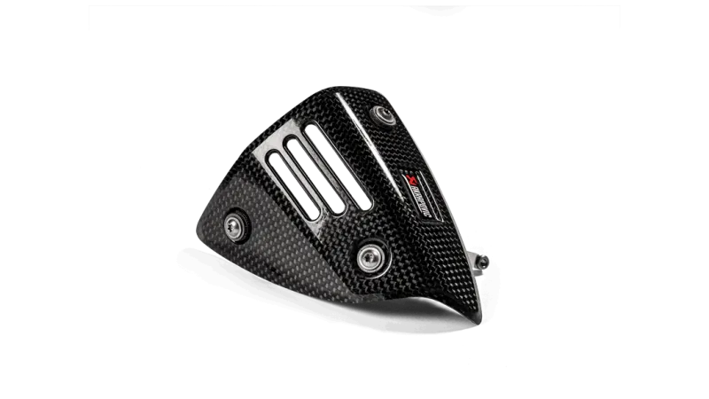 This hand-made carbon-fibre heatshield has been exclusively designed for the EC/ECE type-approved Slip-On Line (Titanium) exhaust system. This easily installed optional product gives a racing look to the exhaust by covering the front rosette that houses the catalytic converter, providing a smooth and sporty appearance to the design and the look of the entire package.