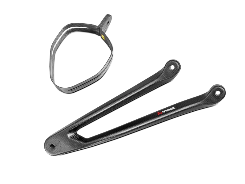 If passenger footrest are removed this optional carbon fibre muffler bracket with different carbon muffler clamp is needed.