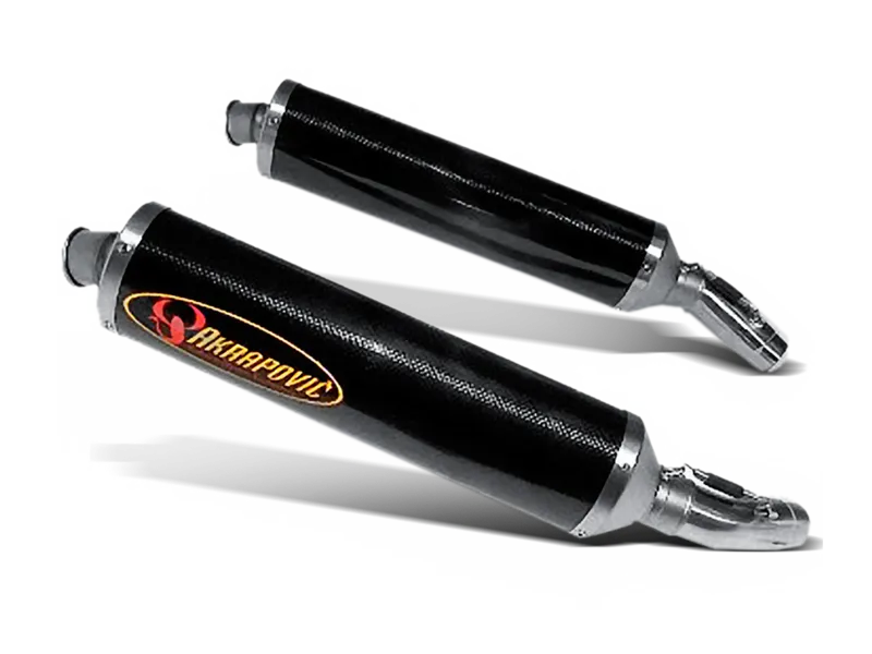 mufflers are available in either the dark shine of carbon-fiber or the elegant satin sheen of titanium. The choice is yours.