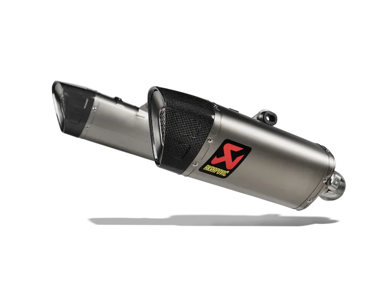 This product is designed to integrate perfectly with the lines of the bike. It is constructed from high-grade sandblasted titanium for the muffler outer sleeves, stainless-steel link pipes, and carbon-fibre end caps with imprints. The twin muffler configuration ‒ one exiting on either side of the seat ‒ is finished with honeycomb exhaust protection within the end caps, as seen on many Akrapovič-supported racing motorcycles, including Grand Prix machinery.