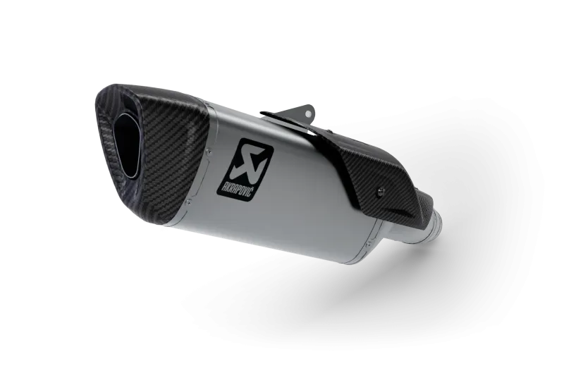 This product is constructed from race-proven materials, with a high-grade titanium muffler outer sleeve sandblasted for a premium finish and a stainless steel link pipe and inner muffler structure. It is finished with a handmade carbon-fibre end cap – specifically designed for this motorcycle – and a carbon-fibre heatshield to protect the rider’s apparel. The shape and contours of the exhaust follow the design language of the famous hexagonal Akrapovič exhaust systems, with the end cap and heatshield designed totally from scratch.