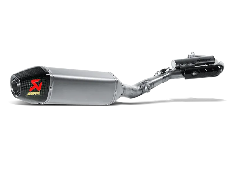 Akrapovič Evolution exhaust systems are designed for riders who demand maximum performance from their motorcycle. Systems are significantly lighter if compared to stock exhaust system and feature exceptional production quality, hi-tech materials and increased engine performance combined with pure racing sound output. Titanium Evolution systems feauture carbon fibre end cap. Our patented chamber helps to reduce noise emissions and provides better power and torque delivery.