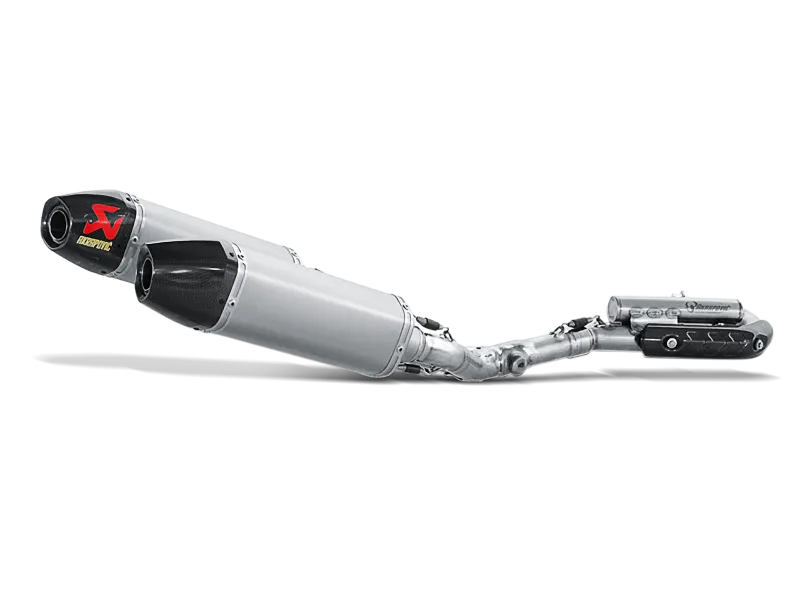 Akrapovič Evolution exhaust systems are designed for riders who demand maximum performance from their motorcycle. Systems are significantly lighter if compared to stock exhaust system and feature exceptional production quality, hi-tech materials and increased engine performance combined with pure racing sound output. Titanium Evolution systems feauture carbon fibre end caps. Our patented chamber helps to reduce noise emissions and provides better power and torque delivery.