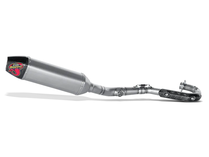 Akrapovič Racing exhaust systems are designed for riders who demand maximum performance from their motorcycle. Systems are significantly lighter if compared to stock exhaust system and feature exceptional production quality, hi-tech materials and increased engine performance combined with pure racing sound output. Racing systems feauture stainless steel header tubes and link pipe, a durable titanium muffler and carbon fibre end cap.
