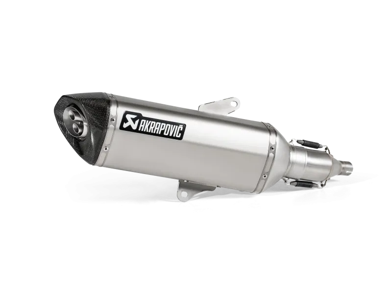 The Slip-On represents the first step in exhaust system tuning. It is simple to install and replaces a stock muffler. It also offers the best combination of price and performance. With the Akrapovič Slip-On system you will get more power, more torque, and less weight. The Akrapovič Slip-On system gives your scooter that unmistakable deep resonant Akrapovič sound and also dramatically changes its visual appearance. Each product features Akrapovič’s finest carbon fibre end caps. Adding the catalytic converter makes the Slip-On exhaust system EC Type approved.