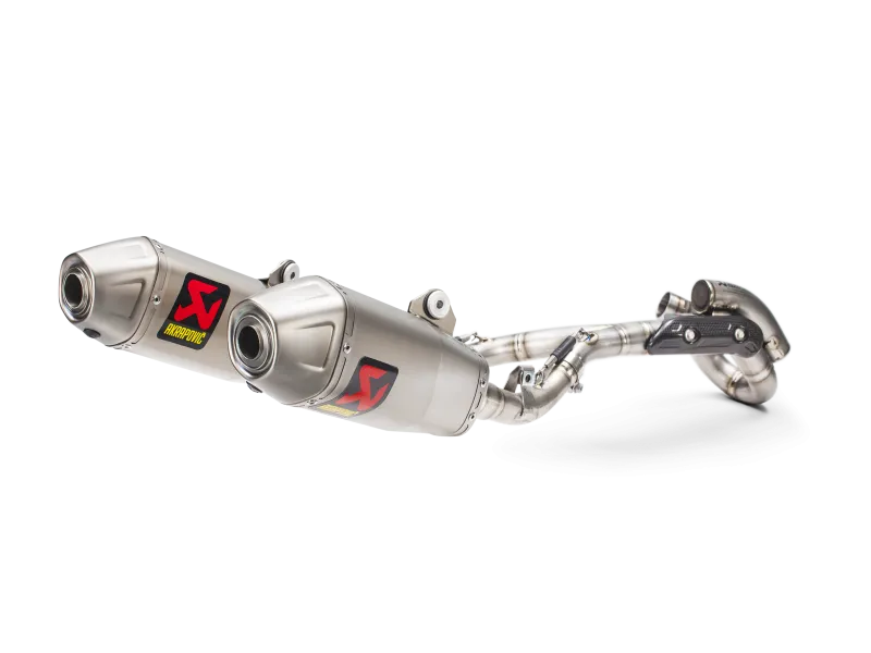 The flagship exhaust system in the range, the Evolution Line is used by race teams. Constructed from ultra-lightweight titanium to significantly reduce weight and assist with handling. This full system features titanium headers, which give a performance increase over the Slip-On Line and a racing sound. Simple to install, the system has a durable coating, easier cleaning, and increased scratch resistance. Meets FIM noise limits.