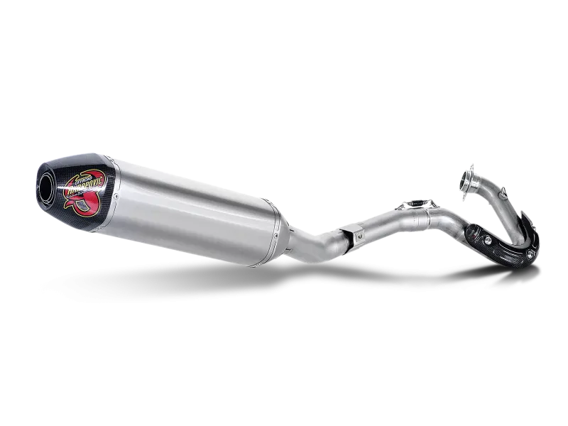 Akrapovič Evolution exhaust systems are designed for riders who demand maximum performance from their motorcycle. Systems are significantly lighter if compared to stock exhaust system and feature exceptional production quality, hi-tech materials and increased engine performance combined with pure racing sound output. Titanium Evolution systems feauture carbon fibre end cap.