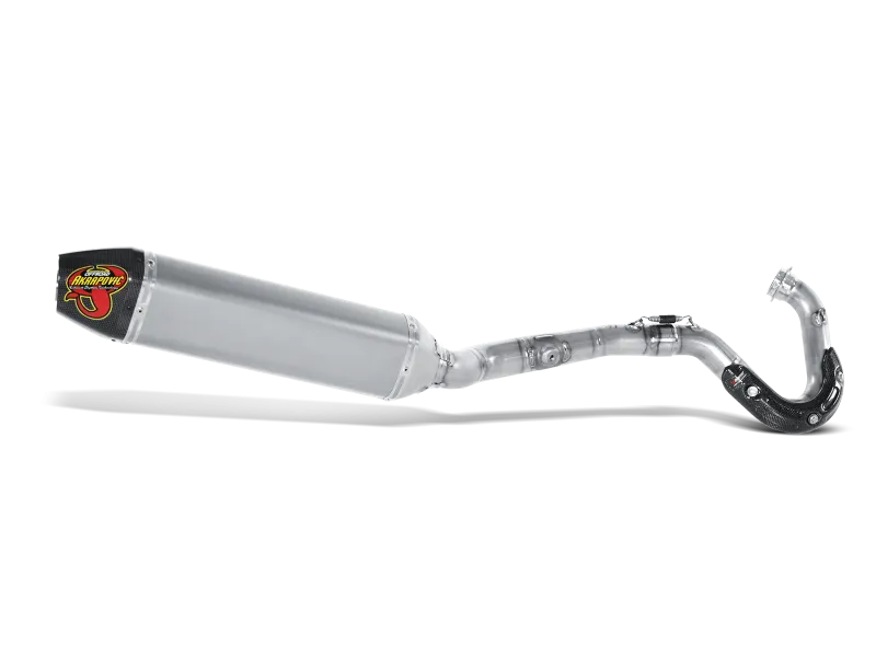 Akrapovič Racing exhaust systems are designed for riders who demand maximum performance from their motorcycle. Systems are significantly lighter if compared to stock exhaust system and feature exceptional production quality, hi-tech materials and increased engine performance combined with pure racing sound output. Racing systems feauture stainless steel header tubes and link pipe, a durable titanium muffler and carbon fibre end cap.