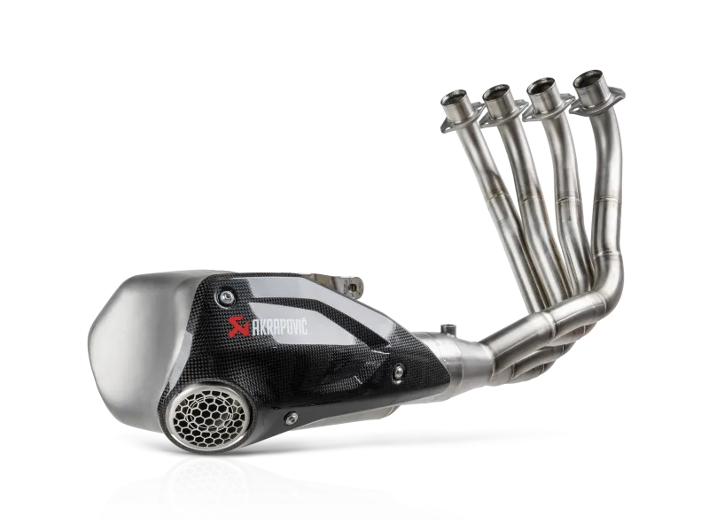 This product is a brand new underbelly complete exhaust system fabricated using high-grade stainless steel with a hand-made carbon-fibre cover that features honeycomb exhaust protection, a reminder of the racing DNA of Akrapovič. The cover is the final touch to the design, and it includes an Akrapovič logo in red and white.