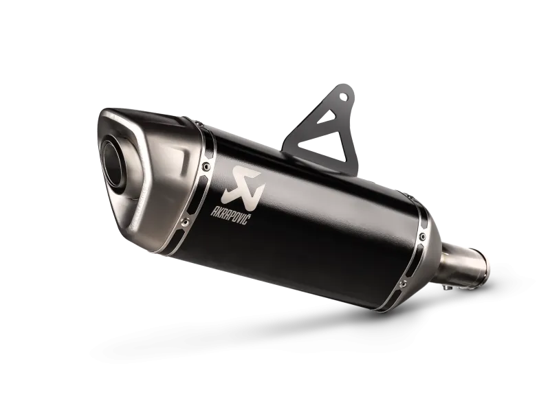Constructed from race-proven materials, this exhaust has a black-coated titanium outer sleeve on the muffler and features a newly designed end cap, also made of lightweight titanium, like the bracket. It is finished with a stainless-steel link pipe and muffler inner structure. Weighing 39.8% (1.6 kg) less than the standard stock exhaust, it offers performance gains in the mid and high rev ranges. During development, the engineers focused on throttle response and rideability, resulting in increased power figures of 0.7 kW (0.9 hp) and a torque enhancement of 1.3 Nm, both at 5,700 rpm when compared to a standard stock system and tested on the Akrapovič in-house dyno.