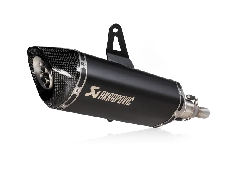 Beautifully designed fully EC/ECE type-approved exhaust with a titanium muffler outer sleeve that is painted black and finished with an engraved Akrapovič logo. A stainless-steel link pipe and a handmade carbon-fibre end cap complete the construction to provide a sporty look in keeping with the futuristic lines of this “urban superbike”. Impeccable throttle response and a 35.6% (1.8 kg) weight savings over the stock system add to the performance of the exhaust. It delivers a power gain of + 0.7 kW (1.0 hp) at 10,200 rpm and a torque increase of +0.7 Nm at 10,200 rpm when measured on the Akrapovič dyno against a Dragster 200cc with a standard stock exhaust system. This is an exhaust that performs as good as it looks and sounds. It is easy to install, and there is no need for any remapping. An optional carbon-fibre heatshield is also available to add the finishing touch.