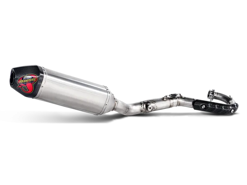Akrapovič Racing exhaust systems are designed for riders who demand maximum performance from their motorcycle. Systems are significantly lighter if compared to stock exhaust system and feature exceptional production quality, hi-tech materials and increased engine performance combined with pure racing sound output. Racing systems feauture stainless steel header tubes and link pipe, a durable titanium muffler and carbon fibre end cap.