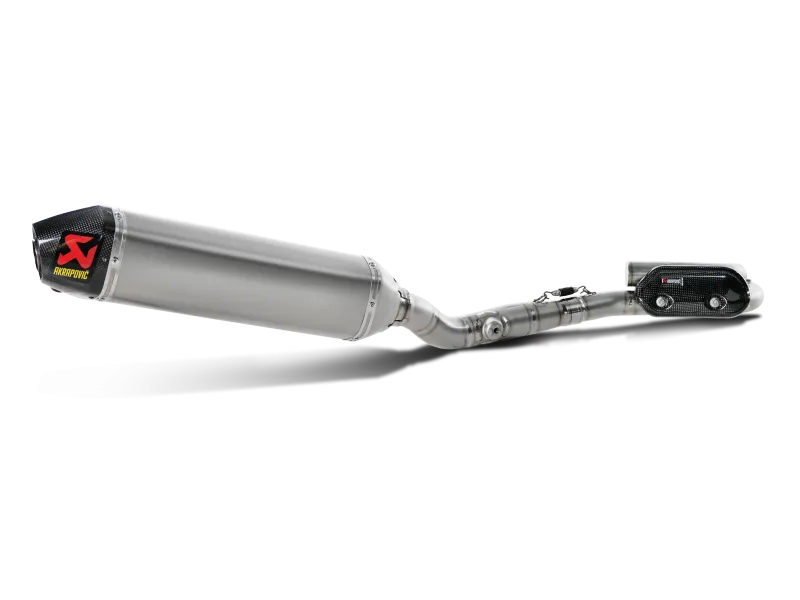 Akrapovič Racing exhaust systems are designed for riders who demand maximum performance from their motorcycle. Systems are significantly lighter if compared to stock exhaust system and feature exceptional production quality, hi-tech materials and increased engine performance combined with pure racing sound output. Racing systems feauture stainless steel header tubes and link pipe, a durable titanium muffler and carbon fibre end cap. Our patented chamber helps to reduce noise emissions and provides better power and torque delivery.