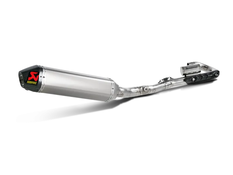 Akrapovič Racing exhaust systems are designed for riders who demand maximum performance from their motorcycle. Systems are significantly lighter if compared to stock exhaust system and feature exceptional production quality, hi-tech materials and increased engine performance combined with pure racing sound output. Racing systems feauture stainless steel header tubes and link pipe, a durable titanium muffler and carbon fibre end cap. Our patented chamber helps to reduce noise emissions and provides better power and torque delivery.