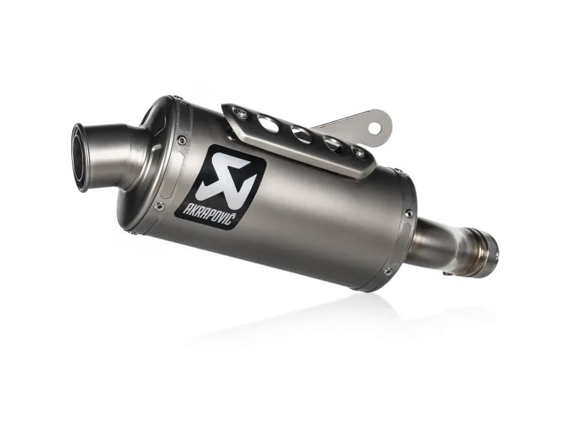 The neo-retro styling utilizes a muffler design first introduced thirty years ago and featuring many updates since then. This Slip-On Line (Titanium) perfectly integrates with the lines of the bike. It is constructed with a high-grade sandblasted titanium muffler outer sleeve, and the link pipe, end cap with imprints, heatshield, and muffler inner structure are all made from stainless steel. It is finished with a monochrome logo sticker and a heatshield to prevent burning or damage to the rider’s gear. During the development stage, emphasis was placed on throttle response and performance. It delivers increases in power and torque of 0.7 kW (1.0 hp) at 6,500 rpm and 1.9 Nm at 6,500 rpm, respectively, when compared to a Triumph equipped with a standard stock exhaust system and tested on the Akrapovič in-house dyno.