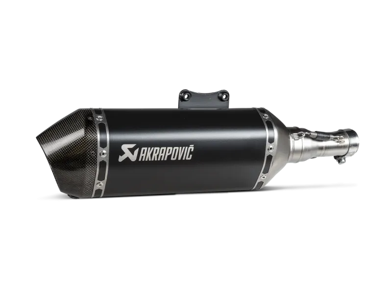 With a sporty, sleek design, this black-coated stainless-steel muffler with an engraved logo is attached to a stainless-steel link pipe, and the exhaust is completed with a handmade carbon-fibre end-cap, perfectly suited to the motorcycle’s lines. A weight savings of over 26% against the standard stock exhaust and a deep, vivid sound, all with EC/ECE type approval, make this a must-have exhaust. Plug-and-play installation means no remapping, and the package includes a catalytic converter because it is a Euro 5 product.