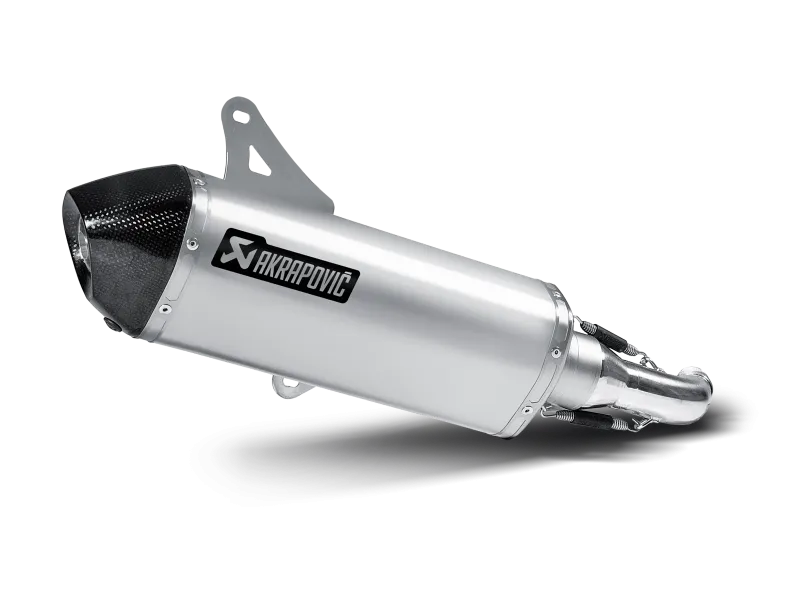 The Slip-On represents the first step in exhaust system tuning. It is simple to install and replaces a stock muffler. It also offers the best combination of price and performance. With the Akrapovič Slip-On system you will get more power, more torque, and less weight. The Akrapovič Slip-On system gives your scooter that unmistakable deep resonant Akrapovič sound and also dramatically changes its visual appearance. Each product features Akrapovič’s finest carbon fibre end caps. EC type-approval is valid only when catalytic converter is installed.