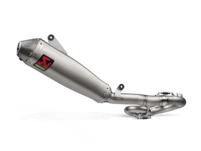 The flagship of the Akrapovič exhaust system range, used and tested by our top factory teams in motorcycle racing. It’s simply the finest exhaust system available. Each model is unique and dedicated to maximizing the engine’s performance, while reducing overall weight for optimized overall handling of the motorcycle. It is made entirely of titanium. Exhaust systems meet FIM noise limits, feature a more durable welded bracket and titanium end cap.