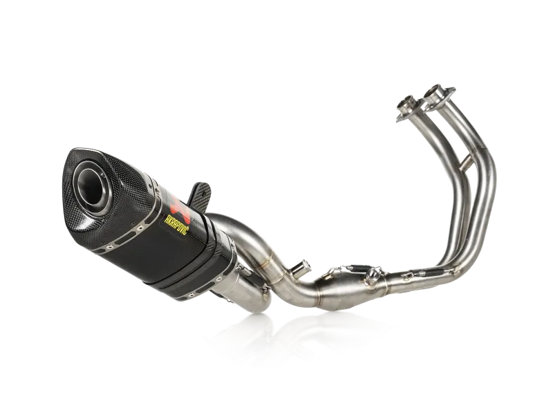 This exhaust has a lightweight carbon-fibre muffler outer sleeve, combined with stainless steel link pipes and headers and finished with a carbon-fibre end cap, to produce a system that is 3.0 kg (41,7%) lighter than stock. The new design features a shorter muffler for an enhanced sporty look, which exits on the side of the bike for visual impact. Power is increased by 1.9 kW (2.6 hp) at 9,100 rpm when compared in back-to-back tests on a MT-07 with a Racing Line (Carbon) exhaust and a standard stock exhaust system. The sporty racing sound is perfectly tuned to the engine. It is designed for use on tracks and closed-course competition circuits.